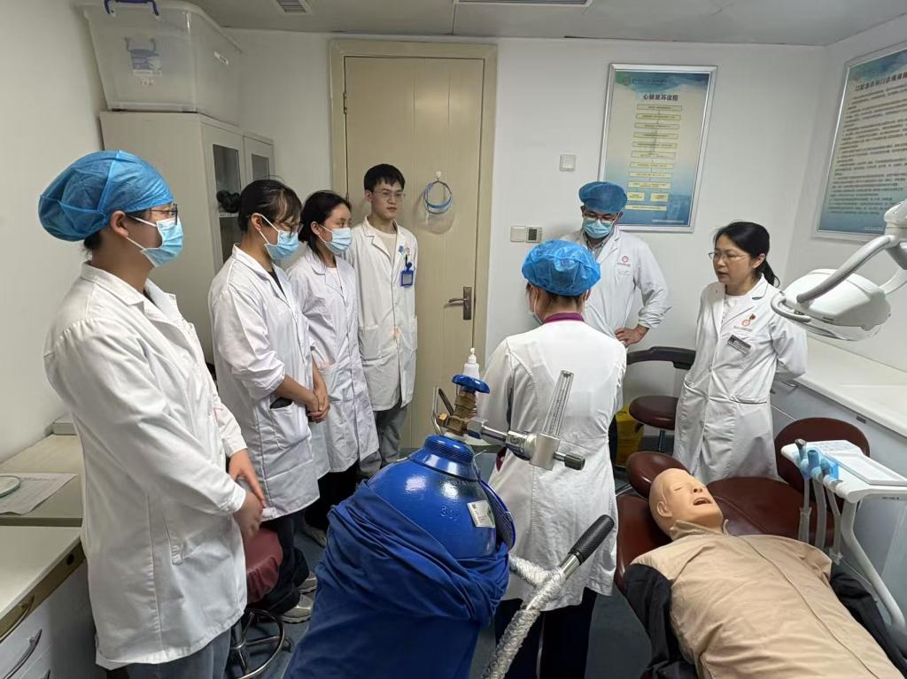 以规范化党建引领力,助力科室业务规范、诊疗安全。聚焦急救能力建设,打造了一支“反应快、技术硬”的专业化急救医护团队。科室定期组织临床业务学习,开展规范的心肺复苏、海姆立克急救法等理论与模拟演练培训,不断提升规范化急救能力,同时为每年规培同学提供精准的急救考前培训,助力其顺利通过考核。护理团队曾荣获2019年西部口腔急救案例大赛二等奖,院级“海姆立克急救法”操作比赛一等奖,“5·12”护士技能操作比赛一等奖。