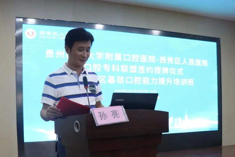 孙亮在讲话中强调,此次专科联盟的签约是深化医改、服务民生的重要一步,标志着西秀区在提升基层口腔医疗服务能力方面迈出了实质性步伐,希望各方加强协作,通过技术帮扶、人才培养和远程医疗等多维度合作,共同打造一个普惠、便捷、可持续的口腔健康服务体系,真正实现“小病不出乡、大病不出区”的医改目标,让基层群众享受到更公平、更可及的医疗福祉。