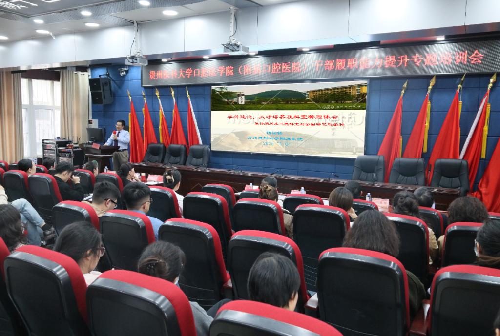 党委副书记、院长马洪指出,学科建设与干部履职能力相辅相成,学科发展的核心在人才,激活人才动能是突破发展瓶颈的关键。他强调,要推动科室从“临床服务型”向“研究型”升级,聚焦临床痛点攻关,引导医务人员从“临床医生”向“学术型医生”转变;要抓实管理,明确科室定位与发展方向,通过优化管理流程提升工作效率,为科室发展营造良好内部环境;要强化对外交流,科室负责人、学科带头人要主动 “出击”,积极参与高水平学术交流,推广学术成果、临床特色与优势技术,讲好“贵医口腔学科故事”,提升品牌影响力。