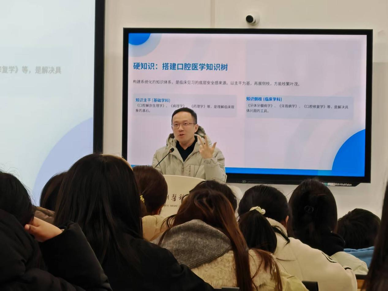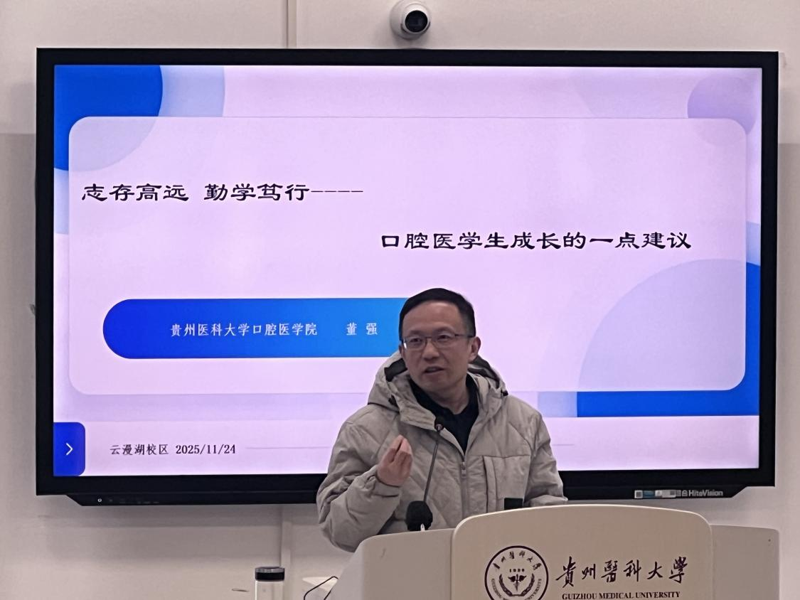 党委委员、副院长董强在云漫湖校区以“志存高远,勤学笃行——口腔医学生成长的一点建议”为主题开展讲座,为2025级口腔医学专业新生带来一场内容丰富、启发性强的专业指导。