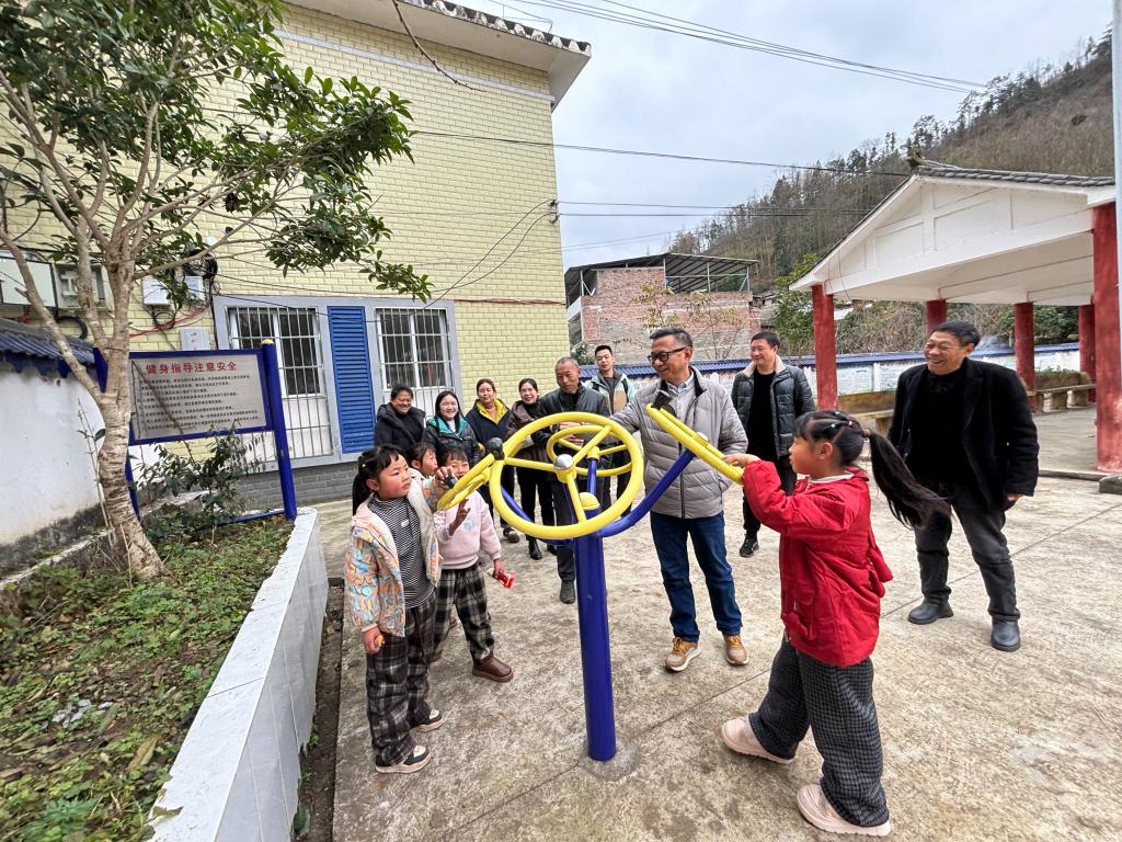 捐赠的健身器械区时,看到孩子们正在快乐地玩耍锻炼,笑声不断,马洪表示,捐赠的设施能够切实服务于村民,尤其是为孩子们提供安全、健康的娱乐锻炼条件,正是医院践行社会责任、助力乡村健康生活的意义所在。马洪叮嘱驻村干部要持续关注此类惠民设施的维护与使用安全,让帮扶成果更好惠及每一位村民。