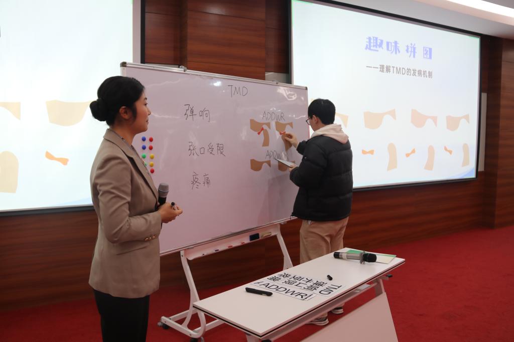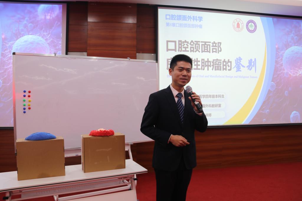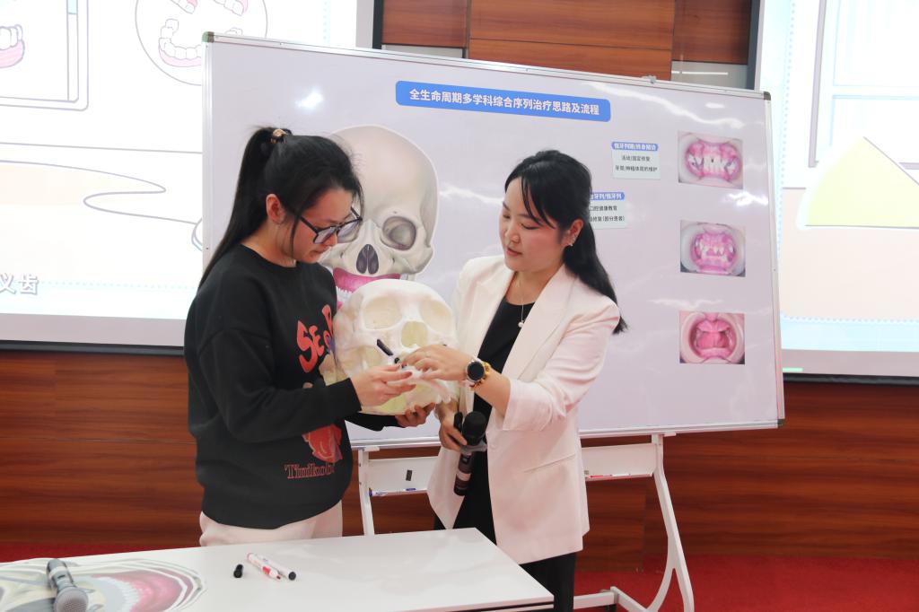 授课环节,四川大学华西口腔医学院丁张帆、空军军医大学口腔医学院张虹云、中国医科大学口腔医学院张儒雅、上海交通大学口腔医学院李洁、西安交通大学口腔医学院程百祥和首都医科大学口腔医学院黄晓想6位青年教师依次进行示范教学,课程涵盖“口腔颌面部良恶性肿瘤的鉴别”“颞下颌关节紊乱病——临床表现及机制”“天疱疮”“外胚层发育不良(ED)患者的口腔临床诊疗”“桩核冠”“牙隐裂”等内容。教师们凭借扎实的专业基础、生动的授课风格,将复杂知识通俗化、趣味化,巧妙融入思政元素、科研前沿与人工智能应用,充分展现了新时代口腔医学青年教师的教学风采。