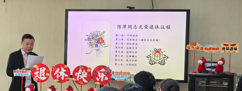 廖健在主持中简要回顾了陈萍自1985年8月入职以来的四十载职业生涯,从药剂专业毕业后,长期坚守在药剂工作一线,2019年晋升为主任药师并担任药剂科主任,直至2026年2月光荣退休。