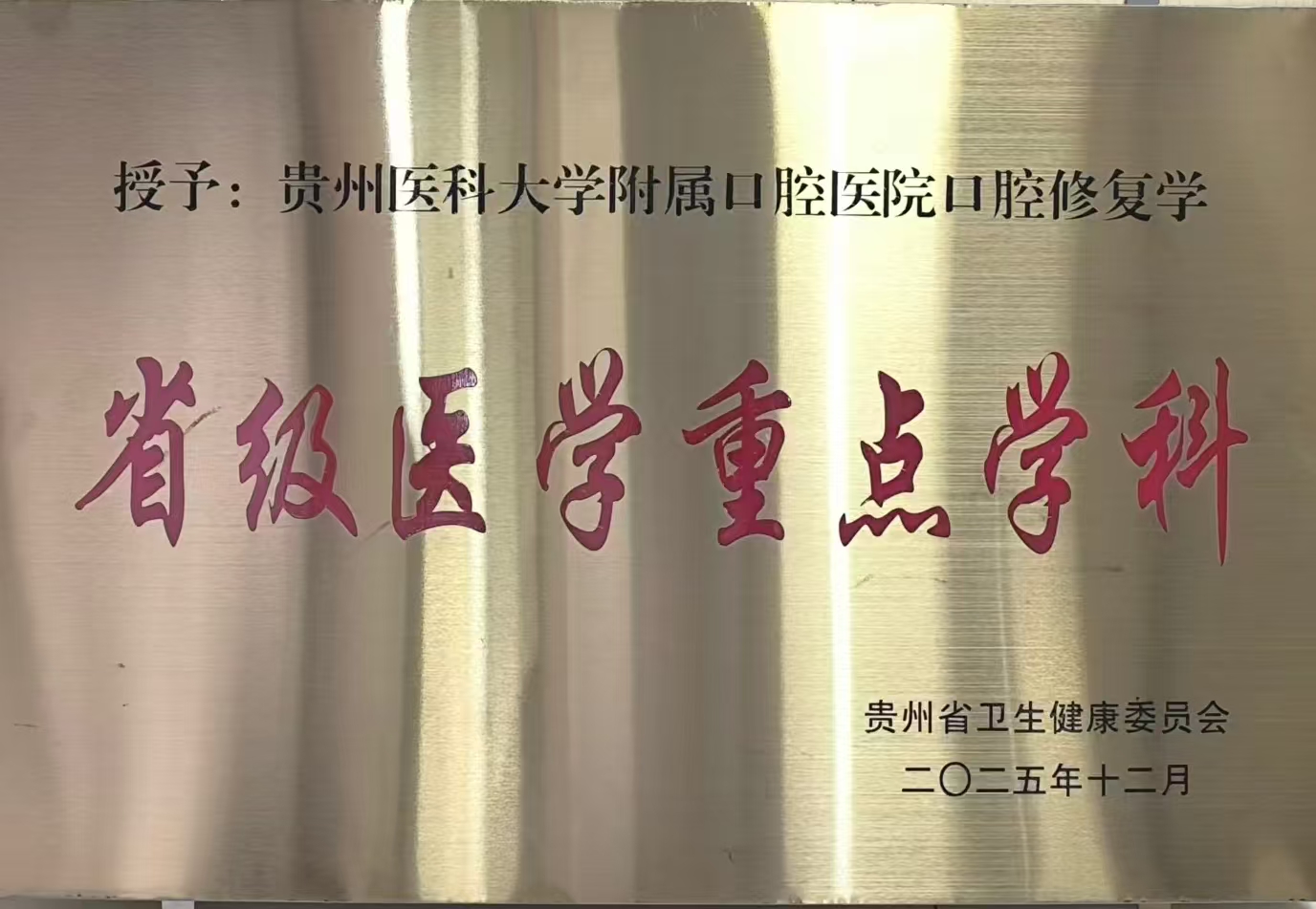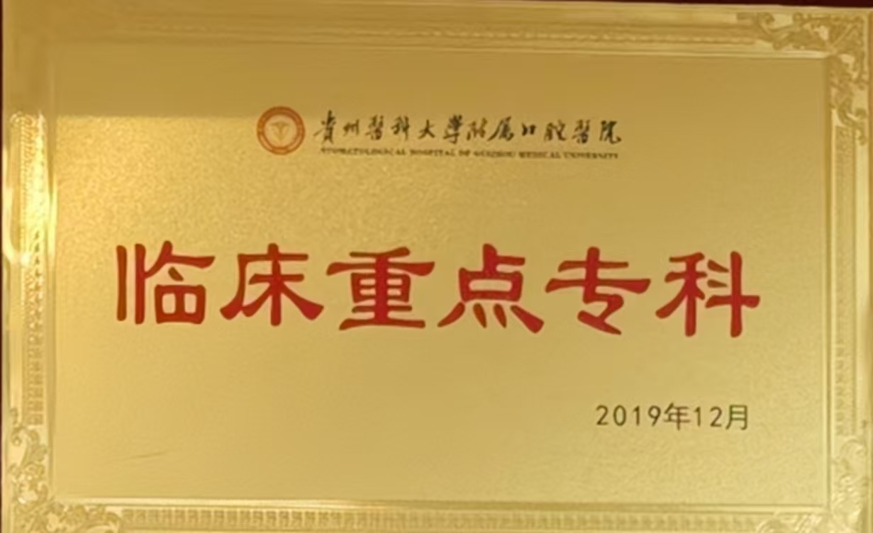 的特色科室。科室为中华口腔医学会口腔种植专委会常务委员单位、贵州省口腔医学会口腔种植专委会主任委员单位、贵州省口腔医学会口腔修复专委会副主任委员单位,临床技术与学科建设位居省内领先行列。目前,北京路院区(主院区)设有2间临床大诊室、8间专家诊室、5间种植手术室,22张口腔综合治疗台;观山湖院区设有2间诊室、5张口腔综合治疗台、2间种植手术室。