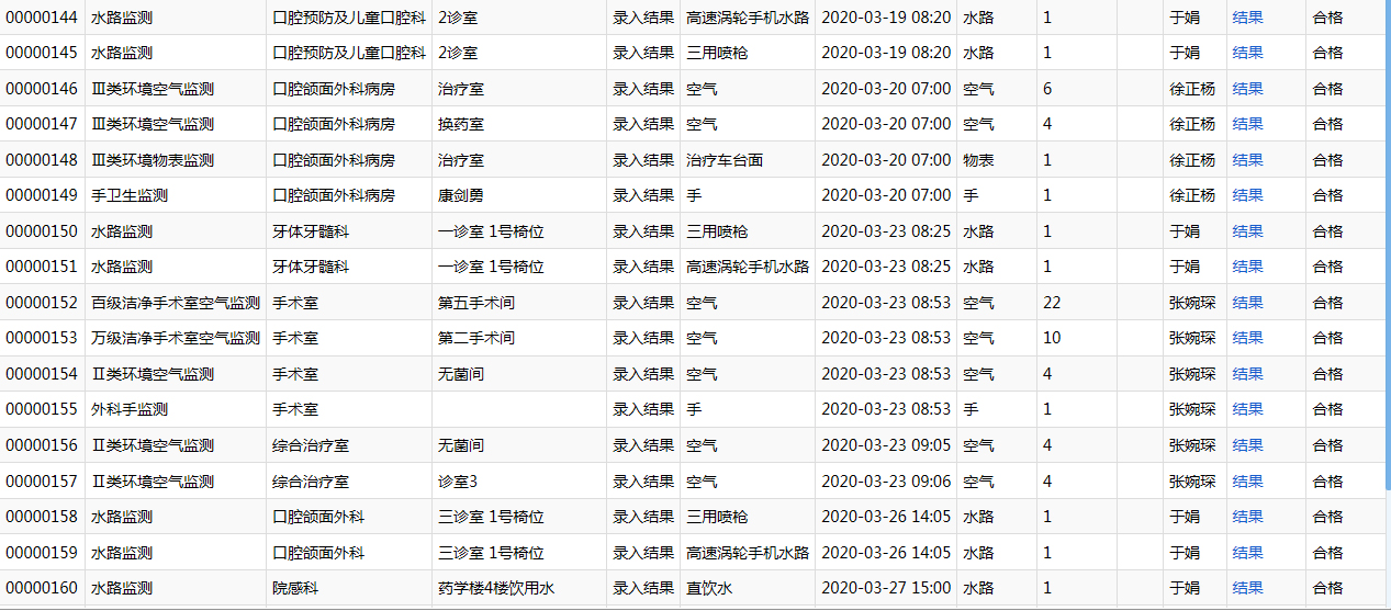 疫情防控如履薄冰,容不得一点大意。医院实行“考核不合格、防护不到位,坚决不上岗”的管理制度,对全体人员统一培训,合格后方可上岗;要求简化诊室设施,备齐诊疗用品,执行手卫生规范、操作规范,严格落实“一室一医一护一患一消毒”。“感控团队”定期进行卫生手消毒、诊室空气消毒、物表消毒和牙科水路消毒监测采样,督导消毒供应中心规范处理复用器械,确保环境卫生质量合格。防控物资是取得抗“疫”胜利的物资保障,各方筹集医用物资,核对物资资质,登记消耗明细,由医院统一调配,为战胜疫情做好长久之“战”的准备。
