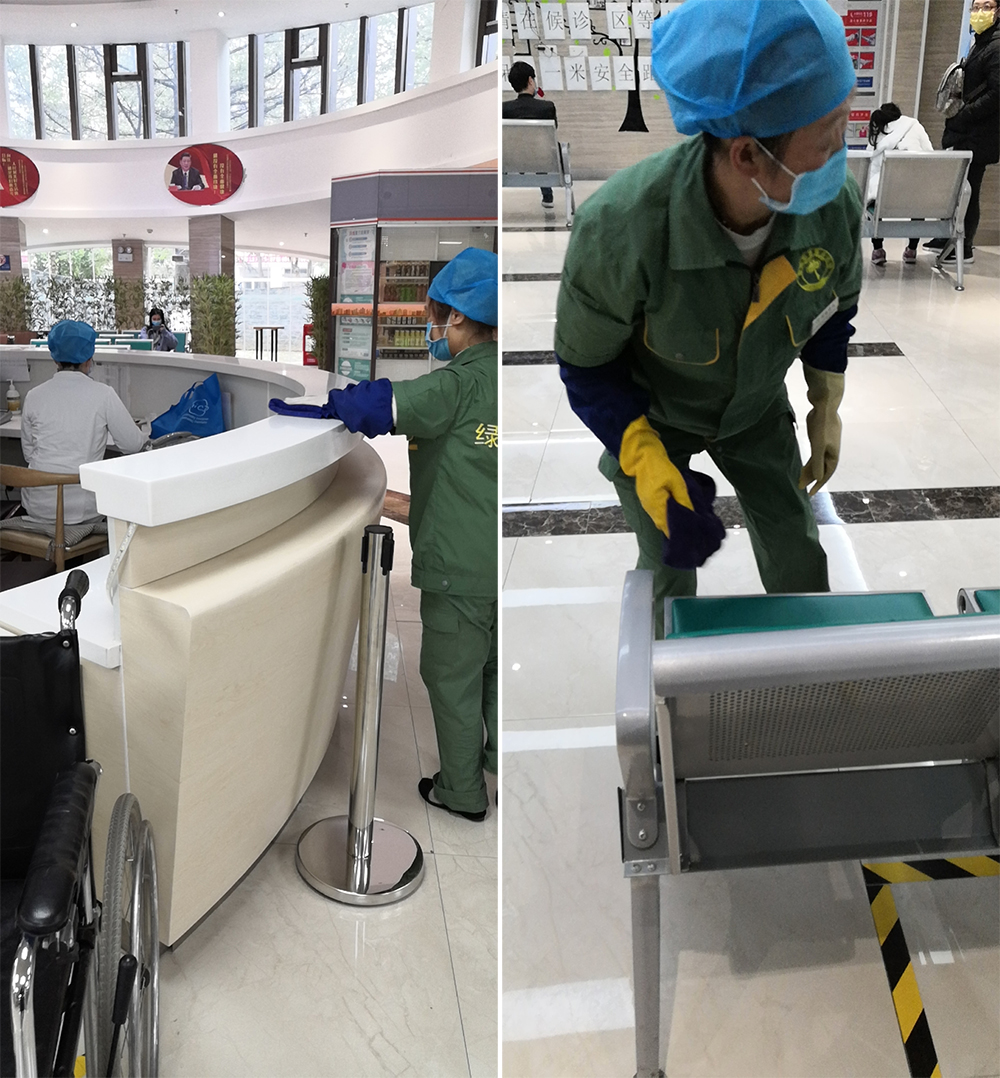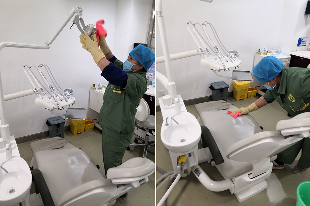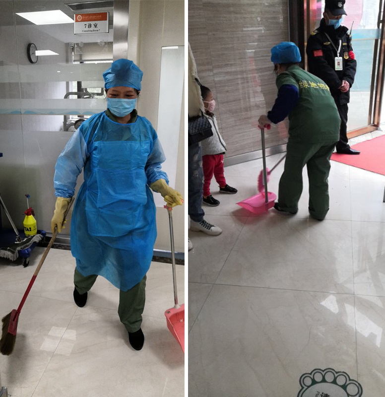 首先是公共区域的卫生,大厅、候诊区、楼道、电梯、卫生间,每一个细节都不放过,扫、拖、擦,每一个环节都认真完成。